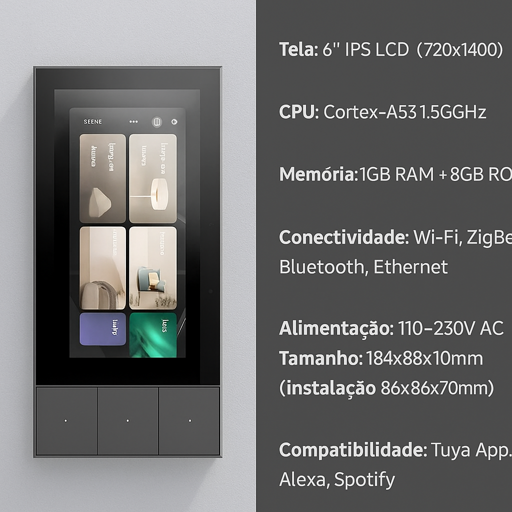 Central Inteligente Touchscreen 6 – Painel Tuya para Casa Conectada com Wi-Fi e Zigbee