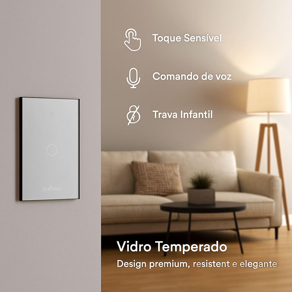 - Vidro temperado: Design premium, resistente e elegante.