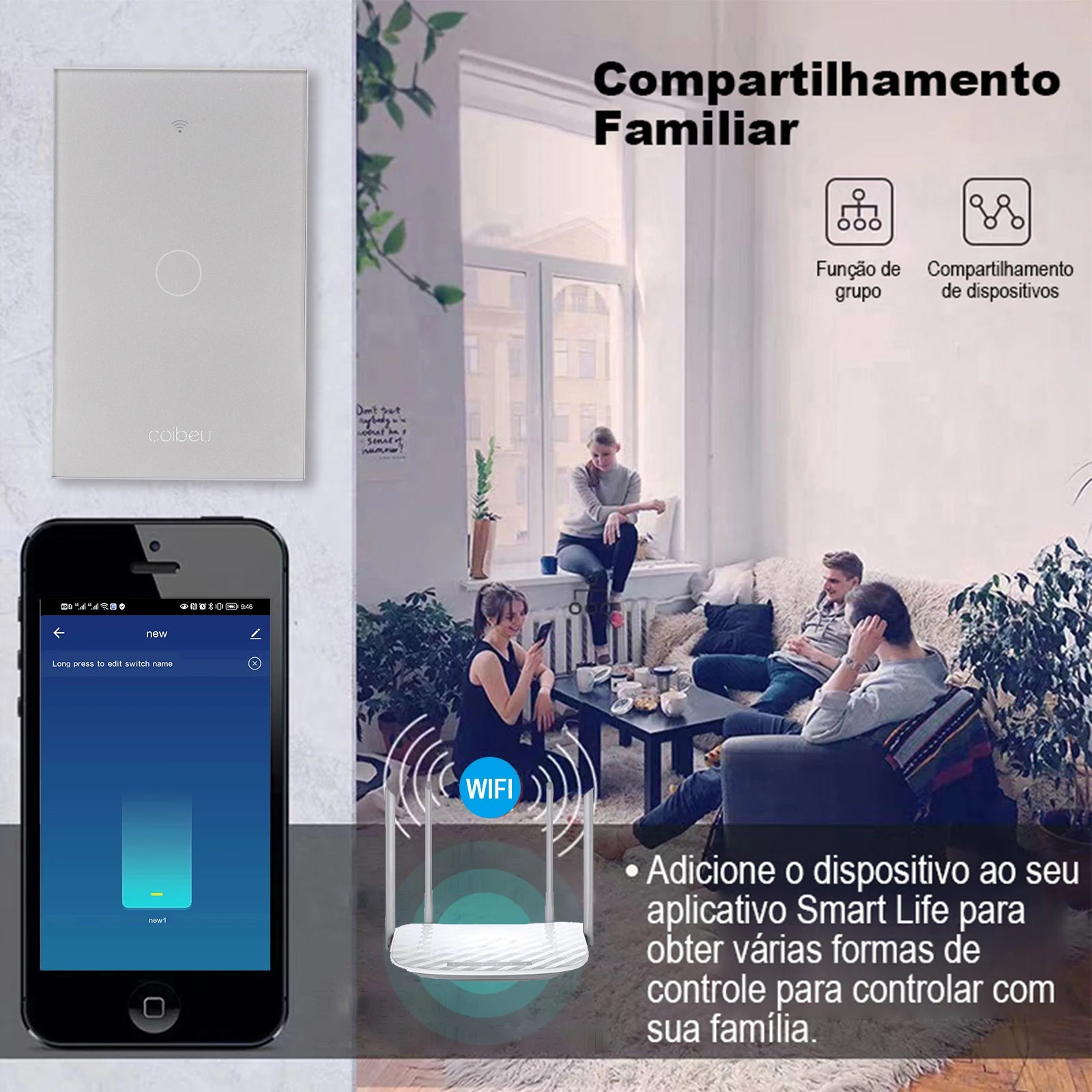 - Comando por toque sensível: Ligar e desligar luzes com um toque suave e silencioso.